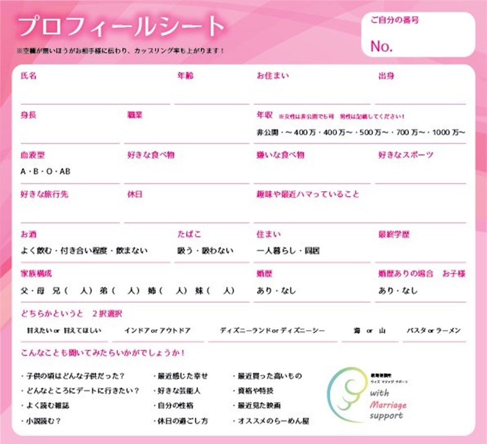 プロフィールシートを全員の異性の方と交換して1対1でお話をしていただきます!